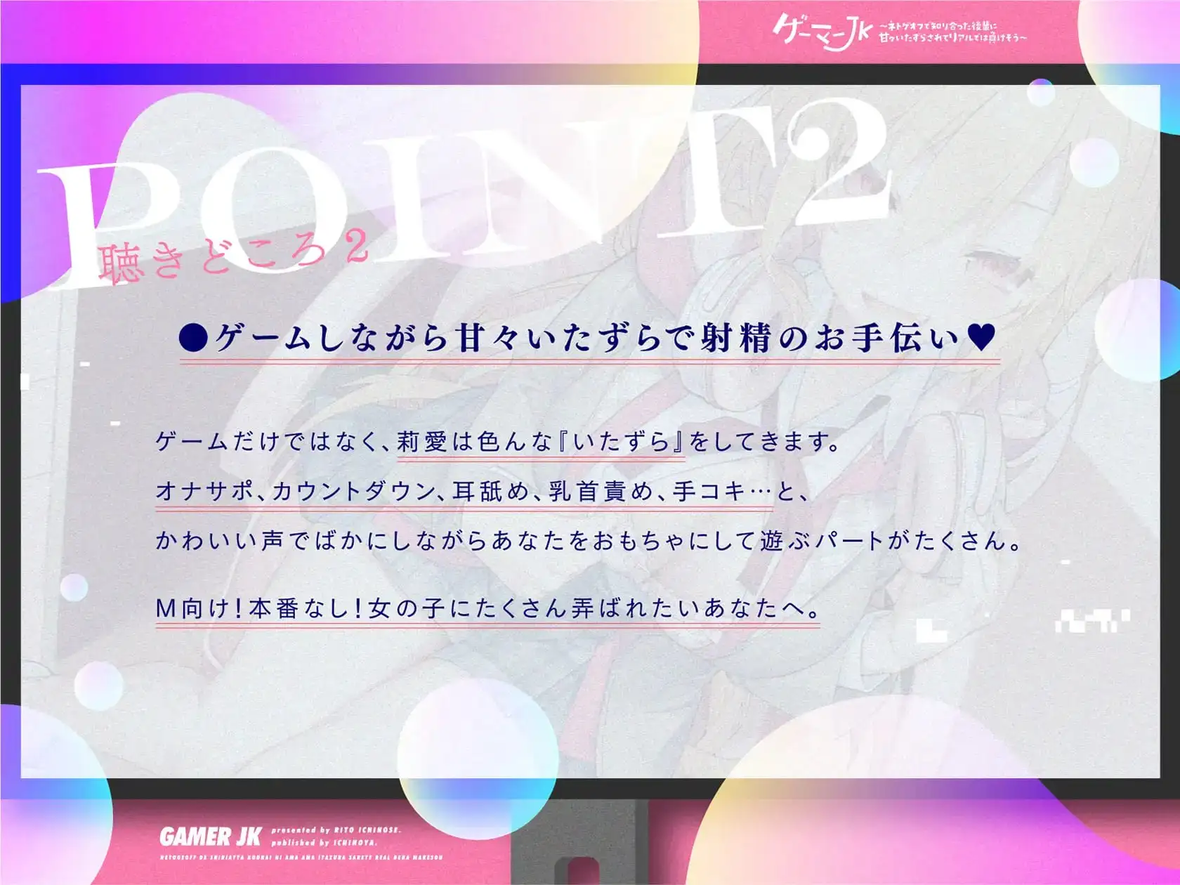 【PR】 【PR】 ゲーマーJK~ネトゲオフで知り合った後輩に甘々いたずらされて… ASMR 2023.12.16 ASMR ASMRいちのやバイノーラル/ダミヘラブラブ/あまあま声優:一之瀬りと学校/学園年下攻め焦らし耳舐め萌え 2Viwe 発売日:2021年10月13日サークル:いちのや評価:4.8 1407 件 ↓ 詳細はこちらから ↓ Favorite